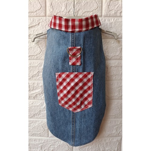 Ризка от деним с елементи от ефектно каре за куче размер XL, с памучна подплата.