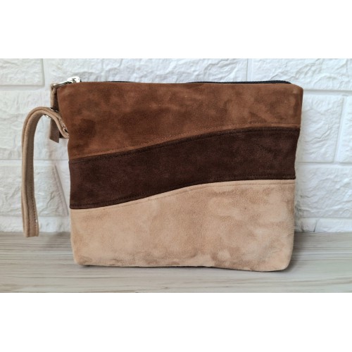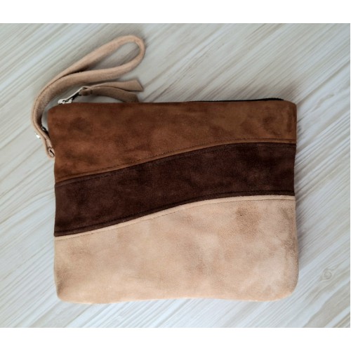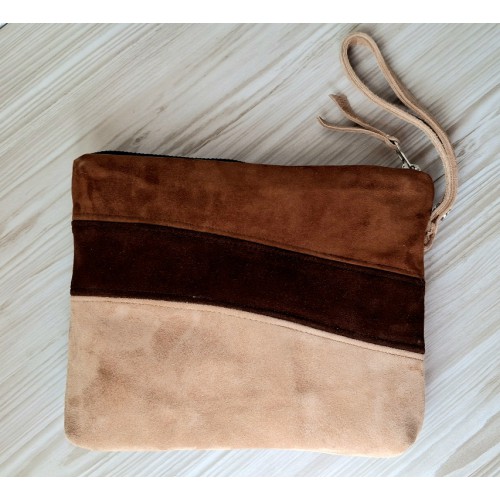 Оригинален несесер от естествена кожа, в класическата комбинация - кафяво, бежово и черно.Ръчно изра..